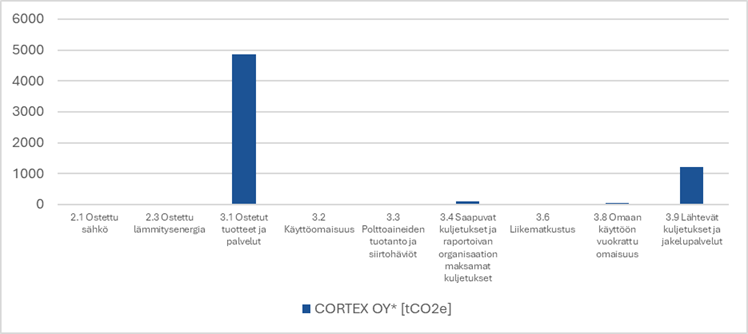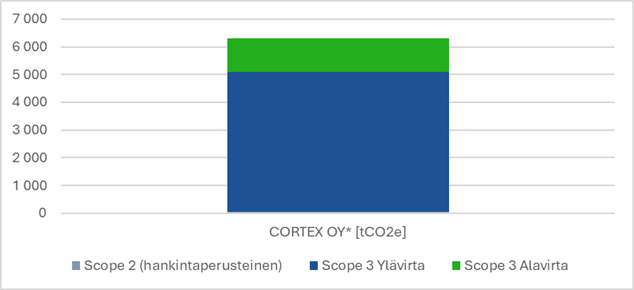 Kaavio 1: Cortex Oy:n hiilijalanjälki 2024 scope-osa-alueittain esitettynä.