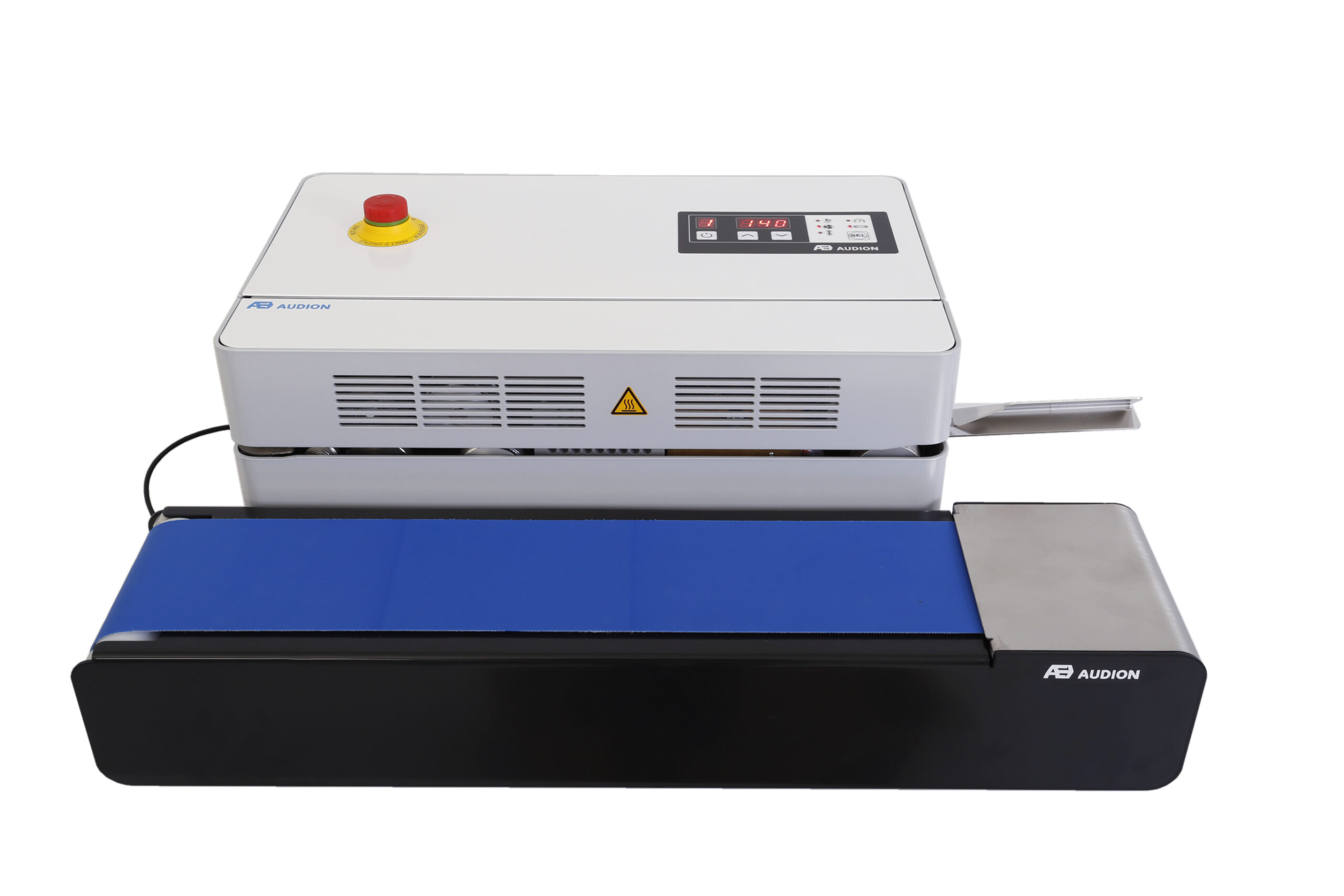 Audion D545 on kompakti ja helppokäyttöinen jatkuvatoiminen nauhasaumaaja, joka sulkee valmiit pussit tehokkaasti vaaka- tai pystysuunnassa. Laitteen lämpötila, nopeus ja jäähdytys ovat tarkasti säädettävissä digitaalipaneelin kautta, ja yhdeksän esiasetettua reseptiä helpottaa eri pakkausmateriaalien saumauksen asetuksia. PTFE-teippien avulla laitteella voidaan saumata useita materiaaleja, kuten polyeteeniä, polypropeenia, sellofaania, paperia, alumiinia ja laminaattikalvoja. Säädettävä kuljetinhihna mahdollistaa erikokoisten ja -paksuisten pussien käsittelyn, ja lämpötila on säädettävissä jopa 250 °C:een.