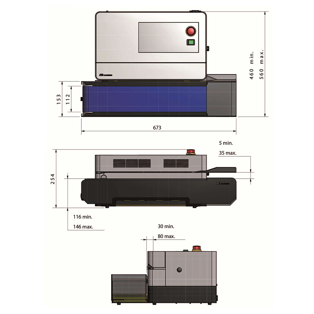 – Säädettävä kuljetinhihna erikokoisille ja -paksuisille pusseille