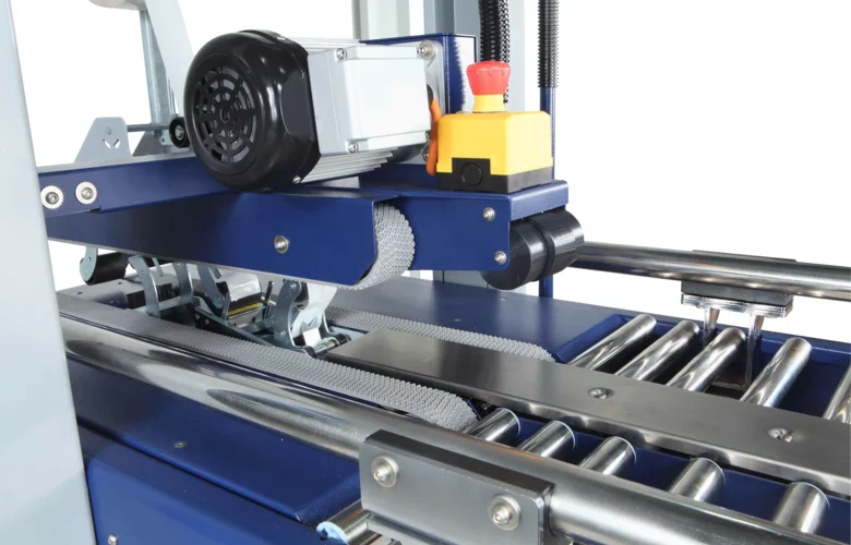 Avataan laatikko ja taitetaan alaläpät kiinni, täytetään laatikko ja taitetaan yläläpät kiinni. Tämän jälkeen syötetään laatikko teippariin. Kone tunnistaa laatikon ja säätää korkeuden ja leveyden yksittäisen laatikon mukaan. Läpi mennessään kone teippaa ylä– ja alaläpät kiinni yhtä aikaa.